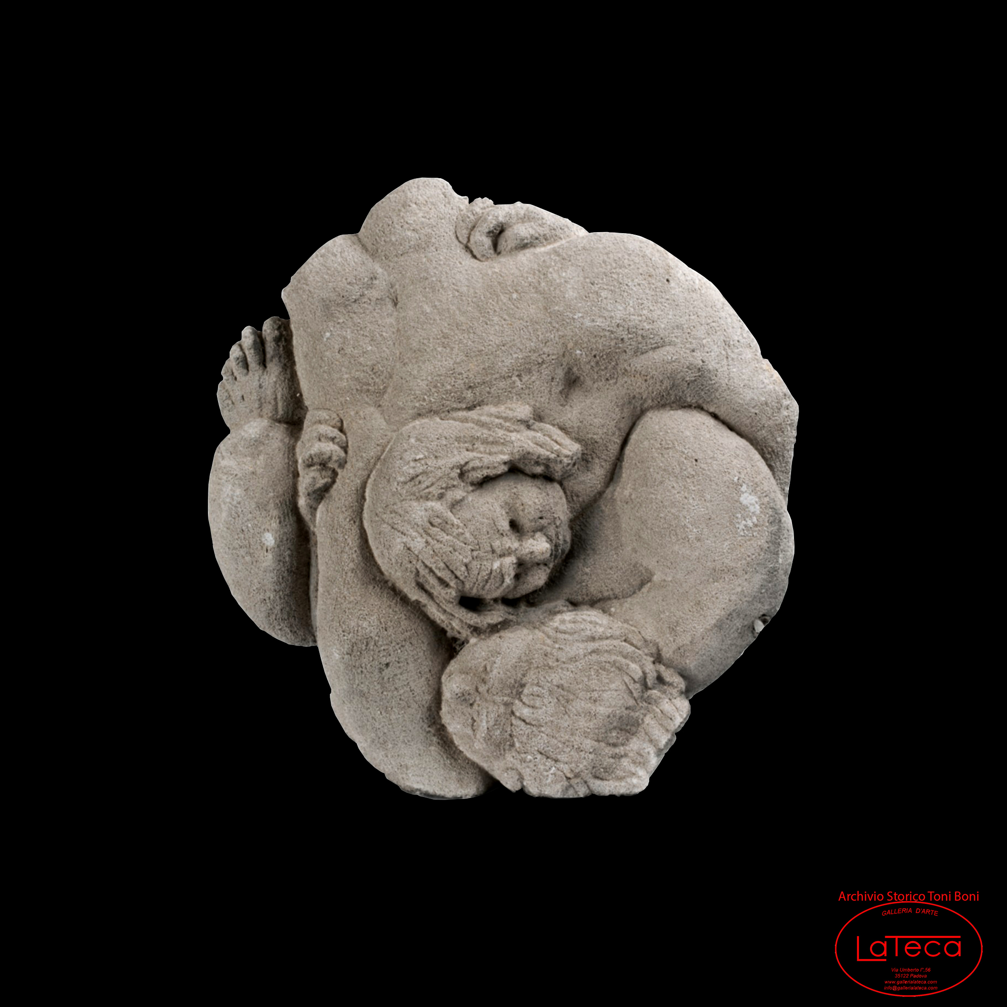 • Toni Boni, Amanti, pietra tenera, cm.42x4,5, anni 50, firma adestra Toni Boni