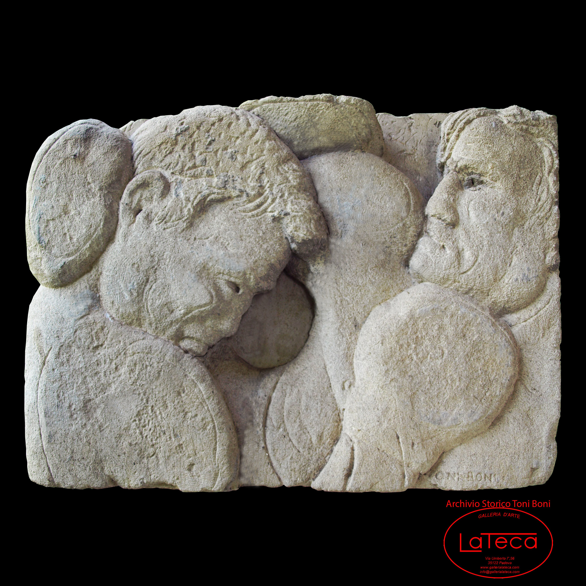 Toni Boni, combattimento di Pugili, altorilievo pietra di Vicenza, cm.532x75,3x9,4, anni 40