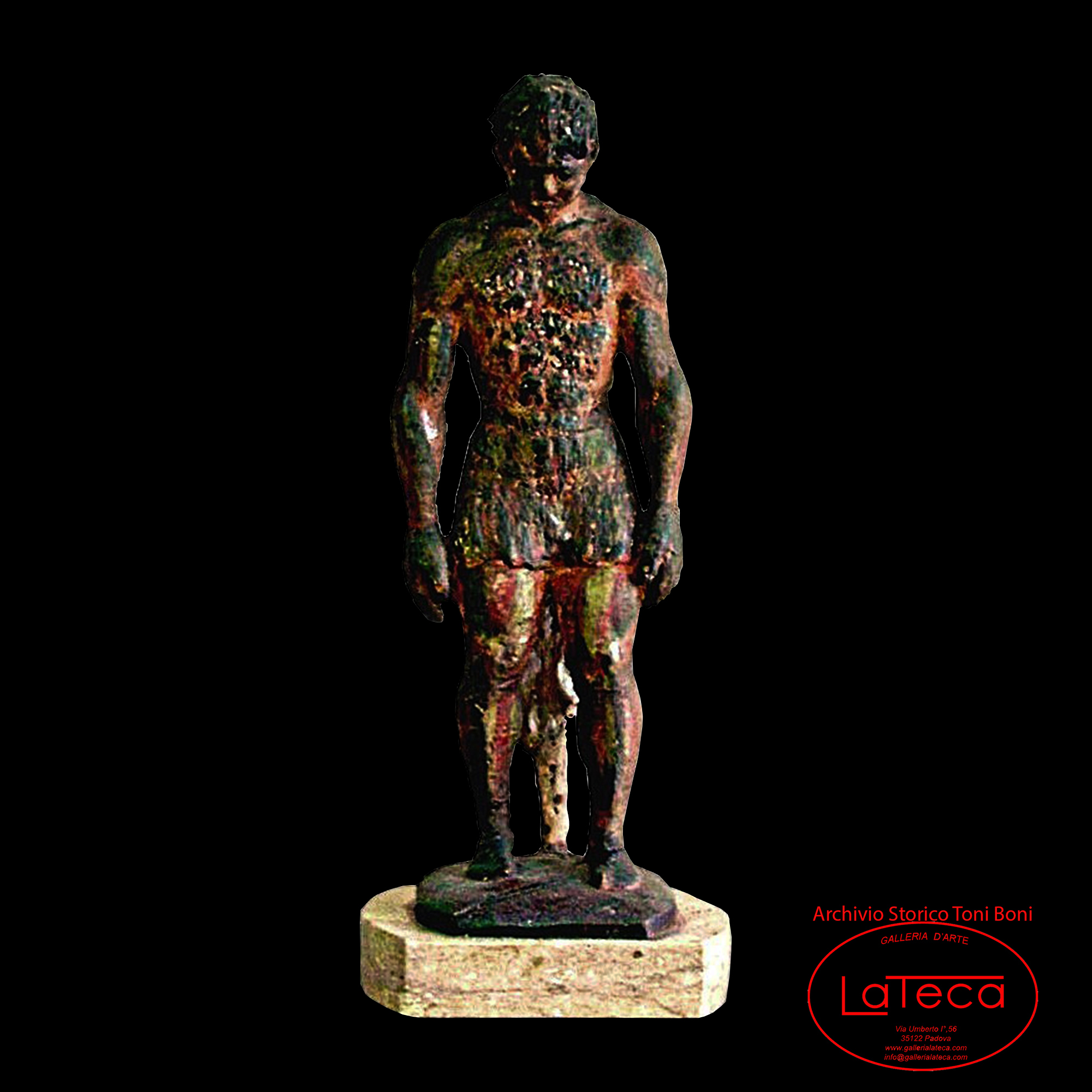 Toni Boni, Pugile scofitto,terracotta patinata e dipinta su base di marmo, h.cm.32,5x10,5, ante 1935